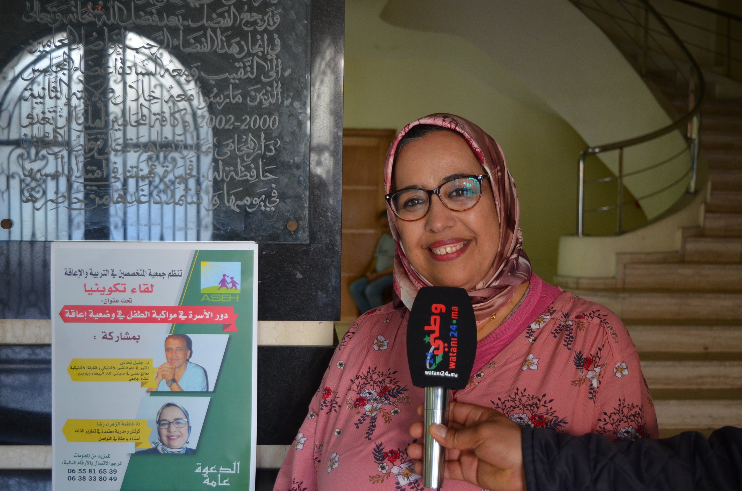 و اشرف على هذا اللقاء التكويني كل من الأستاذ الجامعي السيد جليل النحاس دكتور في علم النفس الكلينيكي و المقابلة الكلينيكية و هو معالج نفساني بكل من الدار البيضاء و باريس حيث تطرق في مداخلته إلى مختلف الجوانب العلاجية النفسية و طرق التعامل داخل الأسرة مع احد أفرادها الذي يعاني من احتياجات نفسية أو حركية خاصة مبرزا الدور الكبير و الأثر النفسي الايجابي الذي يتركه في نفسيتهم من اجل القبول و الرضا بالواقع.